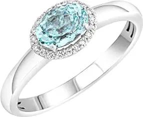 Damen Ring 585/- Gold Glänzend Aquamarine weiß 0,09ct. 300370092-1