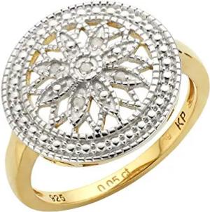 Damen Ring 925/- Sterling Silber bicolor Diamant gelb 0,05ct. 358270817