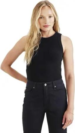 Damen Rib Knit Tank TEES, Beautiful Black, M EU