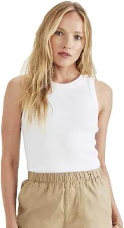 Damen Rib Knit Tank TEES, Lucent White, XS EU