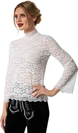 Dirndl Bluse Damen, Dirndlbluse weiß, Trachtenbluse Damen, Langarm Dirndlbluse Spitze, Trachtenhemd, Dirndl Bluse transparent - Diverse Größen