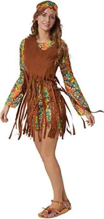 dressorfun Damenkostüm Rebellische Hippie Squaw, Outfit im typischen Hippie-Stil inkl. Stirnband - S