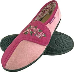 Damen Memory Foam Frottee Hausschuhe Klettverschluss mit Blumen für Senioren (39 EU, Dusky Pink)