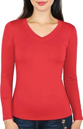 Basic Damen Langarmshirt Thermo Shirt Frauen angeraut/Innenfutter Langarm T-Shirt Unterhemd - 10 Farben - LD002 (S/M - 36/38, Rot)