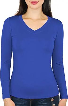 Basic Damen Langarmshirt Thermo Shirt Frauen angeraut/Innenfutter Langarm T-Shirt Unterhemd - 10 Farben - LD002 (S/M - 36/38, Royalblau)