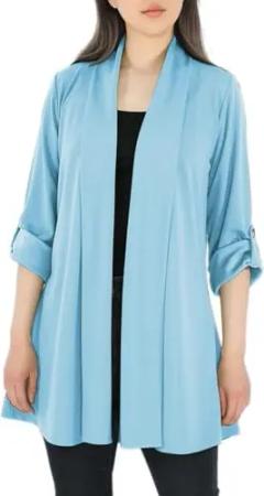 Damen Cardigan – Leichte Übergangsjacke im Blazer-Stil Offene Frühlingsjacke - CA302 (DE/NL/SE/PL, Numerisch, 38, 40, Regular, Regular, CA302-Babyblau)