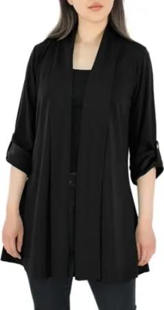 Damen Cardigan – Leichte Übergangsjacke im Blazer-Stil Offene Frühlingsjacke - CA302 (DE/NL/SE/PL, Numerisch, 38, 40, Regular, Regular, CA302-Schwarz)