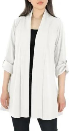 Damen Cardigan – Leichte Übergangsjacke im Blazer-Stil Offene Frühlingsjacke - CA302 (DE/NL/SE/PL, Numerisch, 38, 40, Regular, Regular, CA302-Weiß)