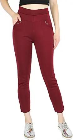 Damen Hose Knöchellang 7/8 Stoffhose Sportlich Elegant - DH302 (DH302-Weinrot, 40/L)