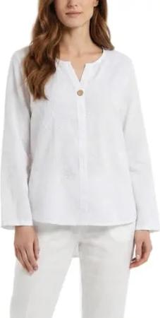 Damen Langarmshirt – Leichte Bluse mit Stickerei und V-Ausschnitt - TU200 (DE/NL/SE/PL, Alphanumerisch, S, M, Regular, Regular, TU200-Weiß)