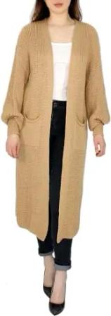 Damen Strickjacke Lang Grobstrick Cardigan im Oversize-Look Strickcardigan - CA300 (DE/NL/SE/PL, Numerisch, 38, 42, Regular, Regular, CA300-KaramellBeige)
