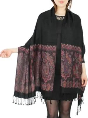 Eleganter Damen Schal im Paisley Muster Stola Schultertuch in Knallfarben (STO002-Schwarz)