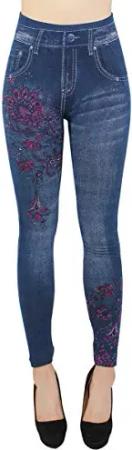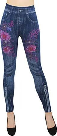 Leggings Damen High Waist Hose Jeggings in Jeans Optik mit Blumen Muster - OneSize Gr.36-40 - JL085 (JL085-OneSize Gr. 36-40)