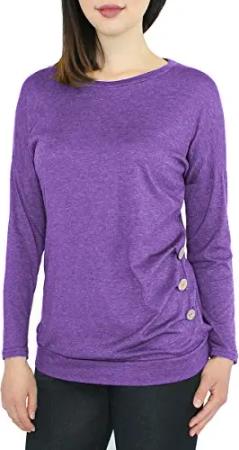 Langarmshirt Damen Rundhals mit Knöpfe T-Shirt Damen Shirt Oberteil Langarm - TP006 (38/M, TP006-Violett)