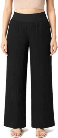 Palazzohose Damen Weite Freizeithose mit Gummibund in Unifarbe Sommerhose Sommerhose (PLH200-Schwarz)