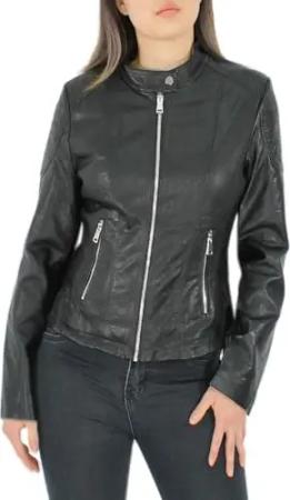 Stylische Damen Kunstlederjacke – Coole Kurzjacke in Schwarz Übergangsjacke (DE/NL/SE/PL, Numerisch, 36, Regular, Kurz, DPJ002-Schwarz)