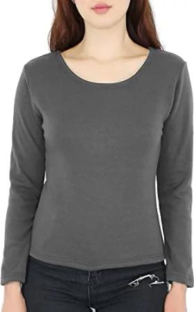 Thermo Shirt Damen Langarmshirt mit Innenfutter Thermoshirt - LD008 (LD008-Grau-Kurz, L)