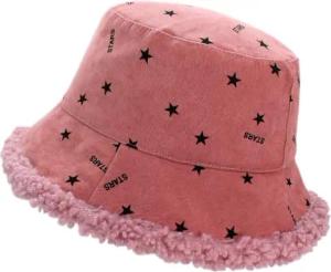 Warme Damen Fischerhut Flauschige Wintermütze Gefütterte Bucket Hat - BH006 (DE/NL/SE/PL, Alphanumerisch, Einheitsgröße, BH006-RetroRosaStars)