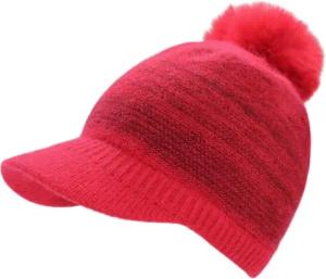 Warme Damen Strickmütze mit festem Schirm, gefüttert und zweifarbig - Winter Schirmmütze mit Bommel - A500 (DE/NL/SE/PL, Alphanumerisch, Einheitsgröße, A500-Rot)