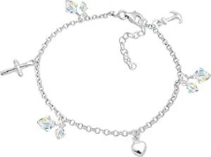 Armband Damen Kreuz Herz Anker mit Kristalle in 925 Sterling Silber
