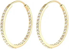 Creolen Silber 925 Vergoldet 24K Frauen Kreolen Damen Ohrringe Gold Farbe mit Steinen 0.03ct Durchmesser 33mm Hoops 0303910612