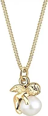 Halskette Damen Engel mit Süßwasserperle in 925 Sterling Silber Vergoldet