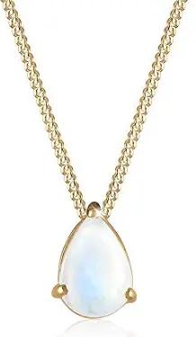 Halskette Damen Tropfen Anhänger Elegant mit Mondstein in 925 Sterling Silber Vergoldet