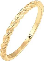 PREMIUM Ring Damen Band Basic Geo Twisted Gedreht in 585 Gelbgold