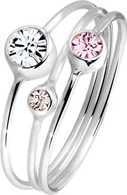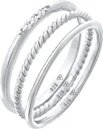 Ring Damen Stacking Basic 3er Set mit Zirkonia Kristallen in 925 Sterling Silber