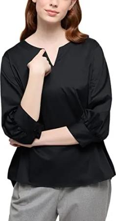 Female Viscose Shirt Bluse unifarben Loose FIT 38_D_3/4, 3/4, schwarz