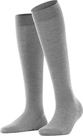Damen Kniestrümpfe Softmerino W Kh Wolle Baumwolle lang einfarbig 1 Paar, Grau Light Grey Melange 3830, 41-42