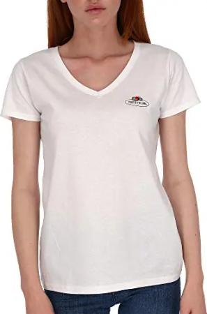 Damen T-Shirt mit V-Ausschnitt mit Vintage-Logo, Farbe:weiß (weiß 30), Größe:S