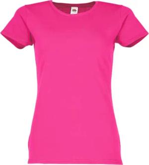 Ladies Iconic 195 – figurbetontes Damen Shirt aus gekämmter Baumwolle, Rundhals Basic T-Shirt mit Seitennähten, Farbe:Fuchsia, Größe:S