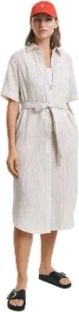 Damen REG Linen Striped Shirt Dress Kleid, Dry Sand, 34
