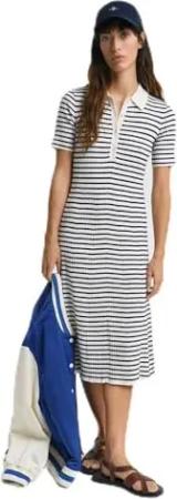 Damen Rib Knit Striped Rugger SS Dress Kleid, Evening Blue, X-Small
