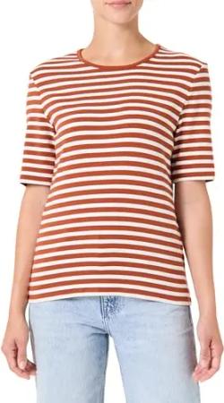 Damen REG Striped Shield V-Neck T-Shirt, Evening Blue, Small