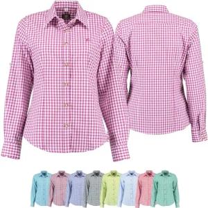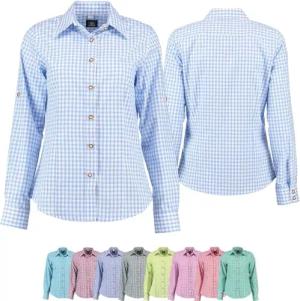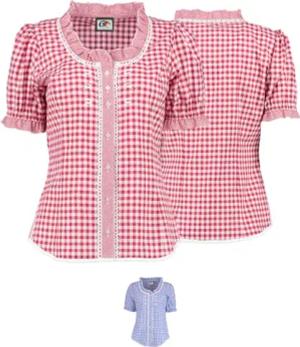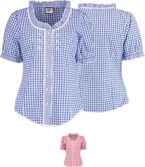 Damen Trachtenbluse/Lederhosenbluse aus feinster Baumwolle Farbe Blau, Rot