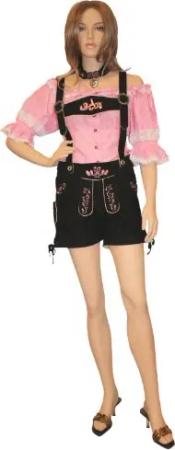 Kurze Damen Trachtenlederhose Ziegenleder damenlederhose Schwarz-Rosa, Größe:38