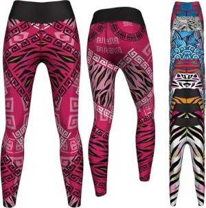 Leggings Sehr dehnbar Fitness Sport Yoga Gymnastik Training Tanzen Freizeit, 38/M, GYM-8043 Schwarz Weiß Rosa