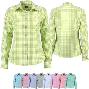 Damen Trachtenbluse Bluse für Trachten Lederhose Trachtenmode karo, Grün, 2XL/44