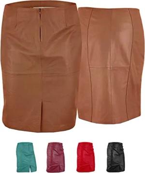 Trendiger Midi Lederrock aus Lammnappa Business Rock Echtleder 36, Grün