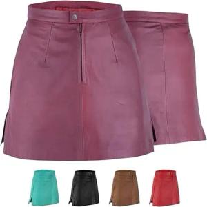 Trendiger Mini Lederrock aus Lammnappa Business Rock Echtleder 48, Weinrot