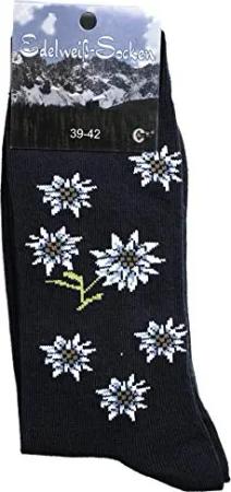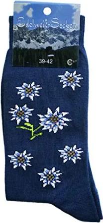 Unisex Trachtensocken Edelweiß-Socken Blütenmuster Kurze socken, 35-38, Dunkelblau