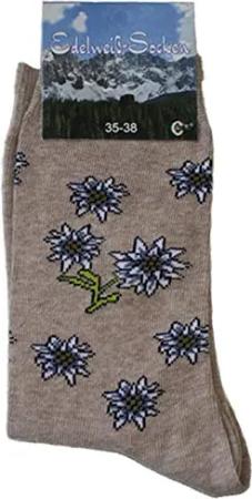 Unisex Trachtensocken Edelweiß-Socken Blütenmuster Kurze socken, 39-42, Braun Melange