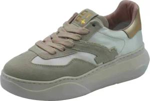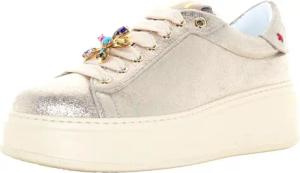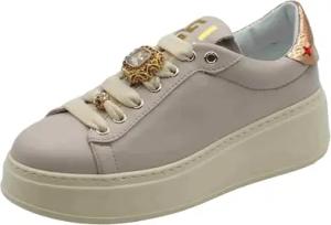 PIA315B Combi Puder Gold Sneakers für Damen aus grauem satiniertem Leder mit Applikationen, Kombi-Pulver, 39 EU