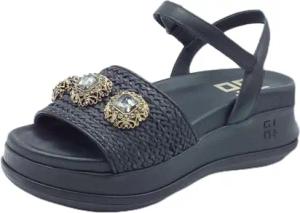Mina04c Combi Black Sandalen mit mittlerem Keilabsatz für Damen aus schwarzem Leder mit Applikationen, Schwarz , 36 EU