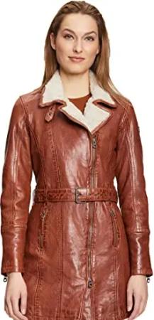 Damen Leder Kurzmantel mit weichem Kragen und Gürtel - GWTamala LARIV W (S, Cognac) Größe Small