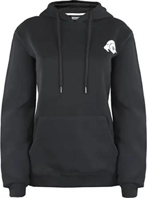 Damen Kapuzenpullover mit Fleece Hoodie Hooded Logo Sweater Sweatjacke Warmer Pullover Streetwear Langarm Kapuze Outdoor Sport Schwarz S