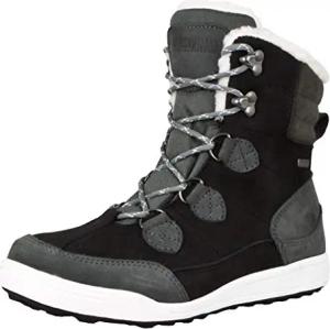 HPC57 Damen Fellstiefel gefüttert mit echter Lammwolle und Synthetik Winterstiefel Winterschuhe Echtleder Leder Stiefel wasserdicht mit Membran Schwarz-Grau, EU 36