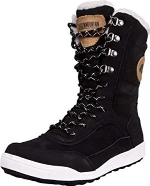 HPC58 Damen Fellstiefel gefüttert mit echter Lammwolle und Synthetik Winterstiefel Wanderstiefel Winterschuhe Echtleder Leder Stiefel wasserdicht mit Membran EU 36